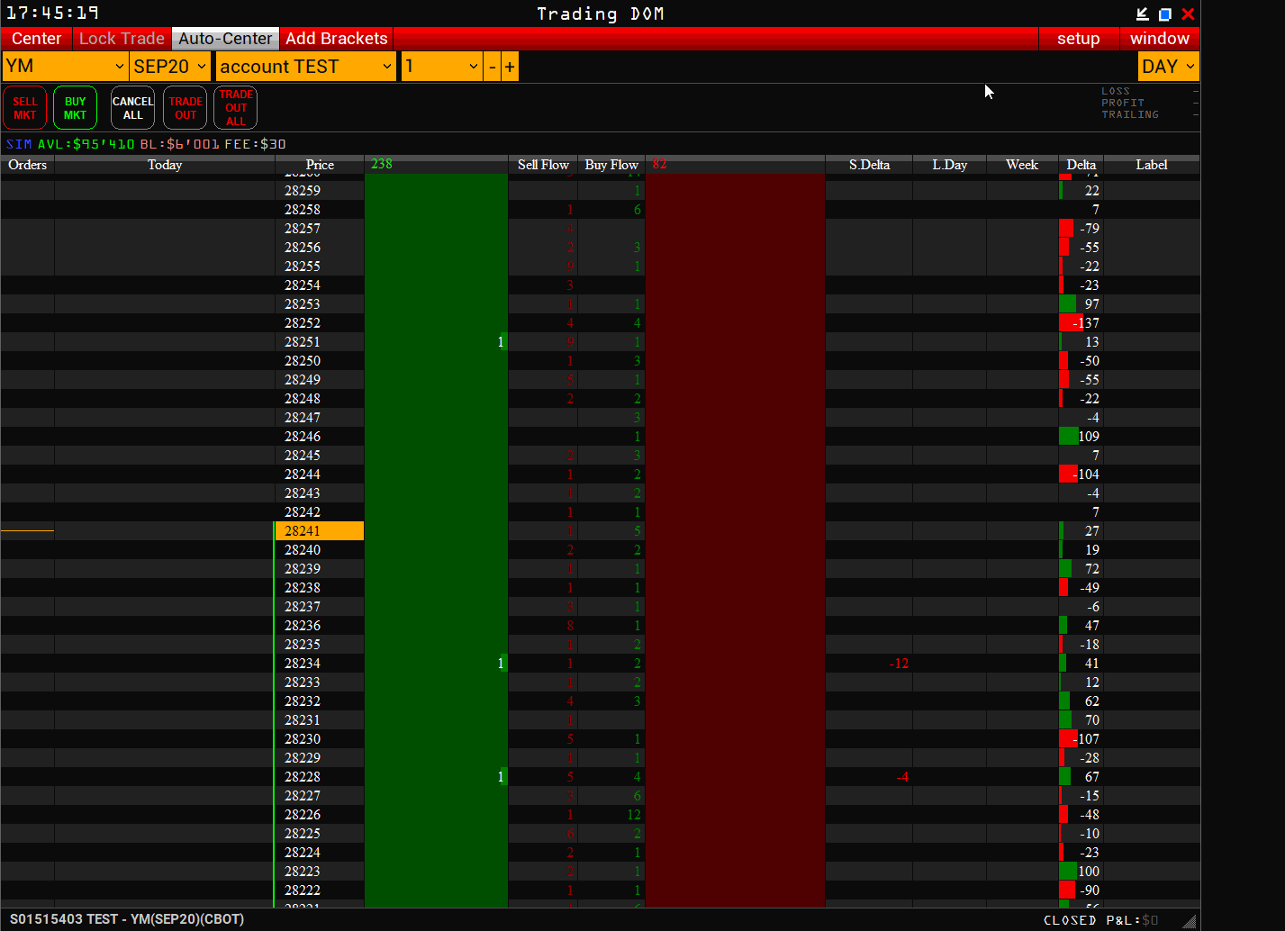 Öffnen des Statement-Fensters im Trading DOM: Klicken Sie im Trading DOM auf die Schaltfläche setup im Top Button Panel oder klicken Sie mit der rechten Maustaste in das Trading DOM-Fenster und wählen Sie Statement aus dem angezeigten Menü.