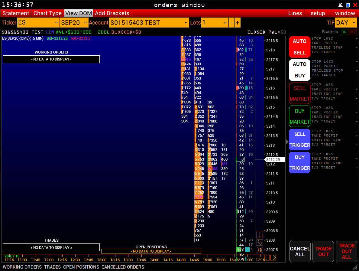 - View DOM muestra el trading DOM.
